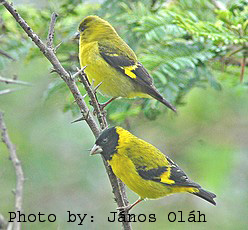 Carduelis olivacea Se parece mucho a la capucha Siskin y es fácilmente distinguible por sus seis paneles blancos en las plumas negras de lucha. Ambos sexos tienen color amarillo debajo de las partes, muy fuertemente teñida de oliva. Lúganos Neotropical son ligeramente más pequeñas que la mayoría de las carreras de lúganos con capucha, que se encuentran a una altitud de hasta 3000. Se extiende desde Ecuador, Perú a Bolivia.Estas aves se mantienen todavía por algunos miembros de la Sociedad Carduelan. En cuanto a la cría y mantenimiento no son especie difícil, básicamente el mismo que para los lúganos capucha. Foto 2 por: V.Yabar
