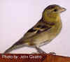 Lawrence Siskin Carduelis lawrencei Esta ave es originaria del Sur de California y el Noroeste de México. A pesar de que es un verdadero Cardenalito, es ampliamente conocido como el Jilguero Lorenzo. Con una longitud de 10-11cm es aproximadamente del tamaño de la "Spinus notatus". Lawrence Jilguero presenta dimorfismo sexual por lo que los sexos se distinguen fácilmente de uno al otro. El macho tiene la frente negro, así como la corona, lores, la barbilla y el centro de la garganta. El resto de la cabeza y las plumas del cuello son de color gris con gris más pálido en las mejillas y coberteras del oído. El manto es de color verde oliva con la baja de la espalda y la cola es de color amarillo verdoso. La cola es negro con manchas blancas en la red interior de las plumas. El pecho y la barra de ala son de color amarillo, mientras que las plumas de la cola son de color blanco bajo. El proyecto de ley es de color rosado y las patas son de color marrón. En avicultura se mantuvo muy rara vez y sólo por los entusiastas de jilguero. Probablemente es el más caro de todos los lúganos que se encuentran en cautiverio. Se reproducen libremente, pero sólo si se mantiene en un aviario, que son muy territoriales y que requieren gran cantidad de mijo siembra verde y hierbas. Para mantenerlos vivos y sanos el agua debe mantenerse limpia, la mayoría de los criadores usan caída Aviclean o uno de Iodine/10 litro de agua. Foto de: Don DesJardin Lúganos olivaceous